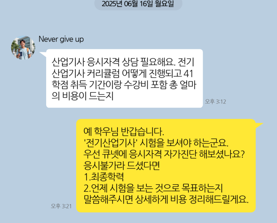 온라인, 단기간, 저렴하게 응시자격을 해결할 수 있습니다.