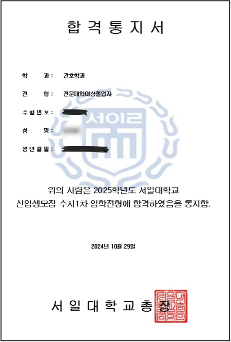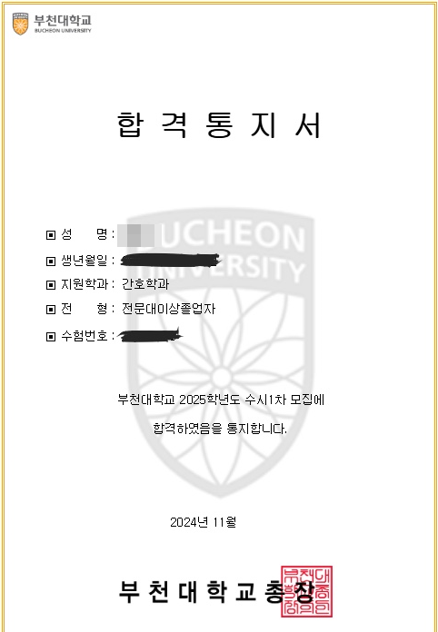 덕분에 물리치료학과 합격했습니다.