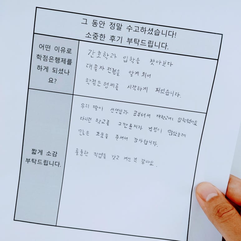 (솔직히 40-50대 학우들은 돌려보내는 경우가 훨씬 많습니다.)