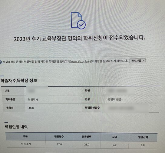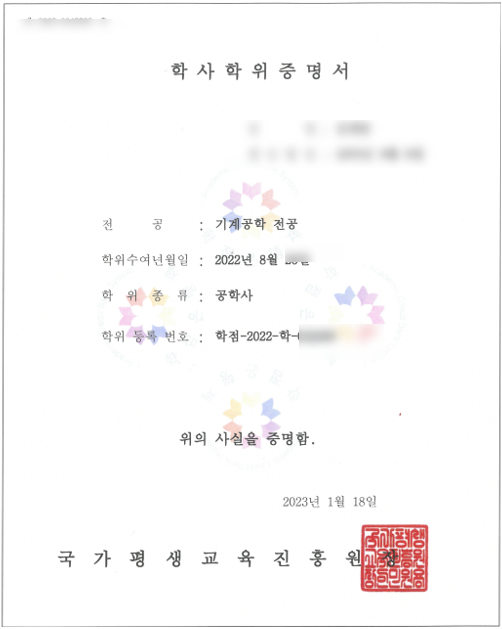 : 106학점 이수 후 4년제 학사학위 취득으로 학력 개선 가능