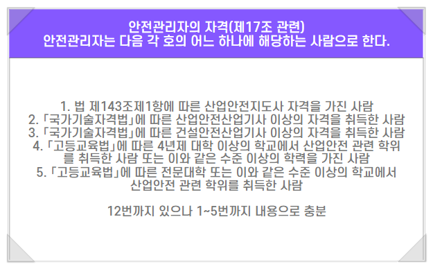 1) 안전관리자 선임기준, 민간자격증으로는 부족합니다!