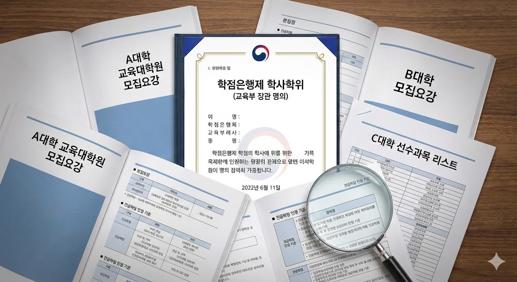학점은행제 학위는 교육부 장관 명의로 발급되고, 정규 대학 졸업장과 법적 효력이 동등해요. 교원자격검정령에서도 학점은행제 학위 취득자의 교육대학원 지원 자격을 인정하고 있습니다.