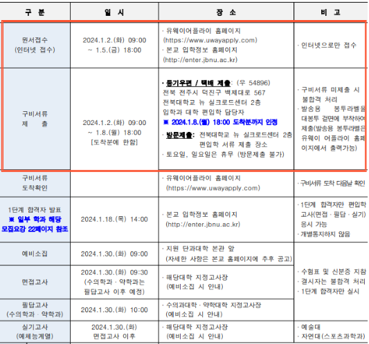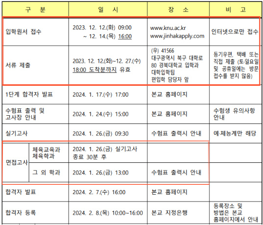 앞서 전북대는 1월 초부터 모집인데, 경북대는 12월 중순부터입니다. 그렇다고 좋아할 건 아니에요. 면접 날짜가 겹칠 수도 있으니 끝까지 꼼꼼하게!