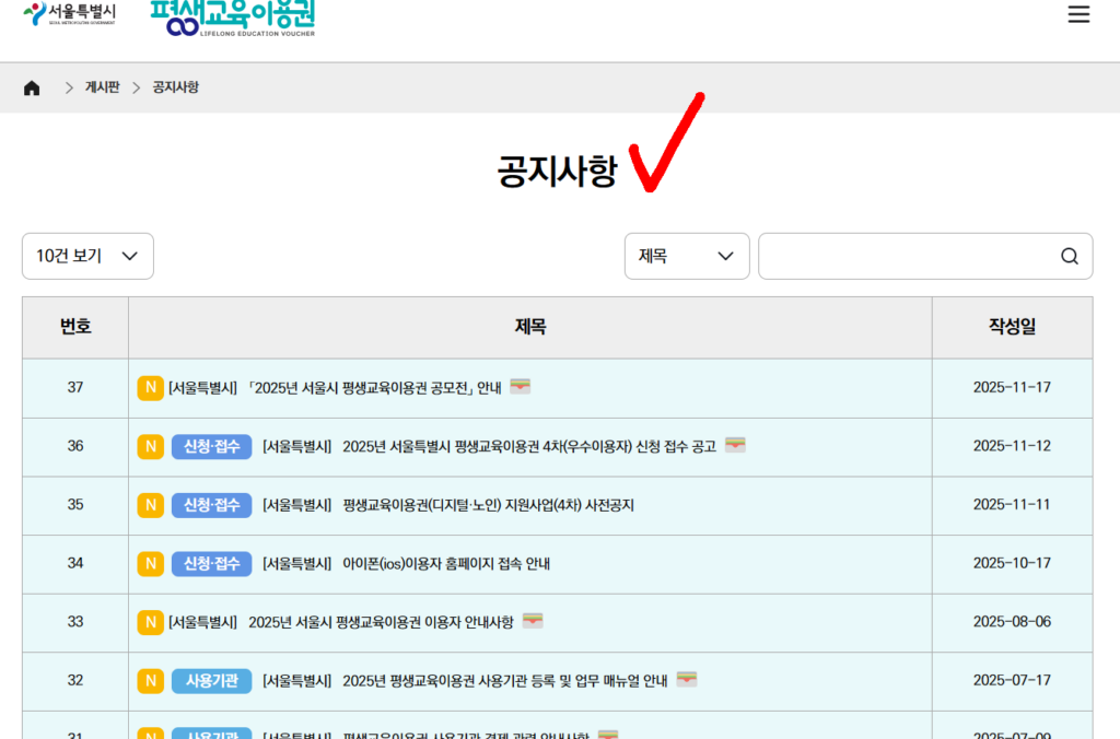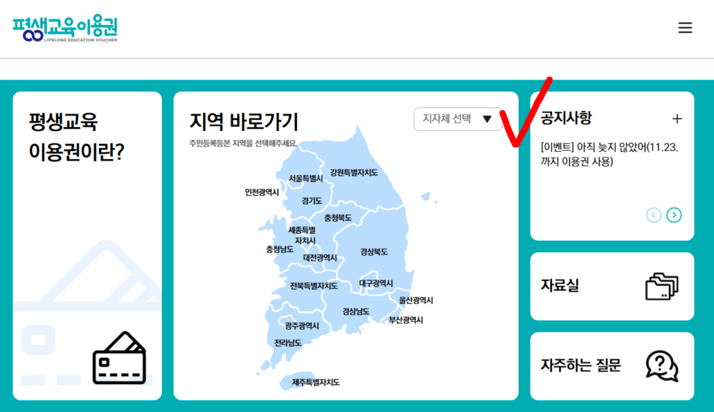 라서 평생교육이용권을 광역지자체별로 신청, 접수, 선정하므로, 주민등록등본상 주소지 기준의 평생교육이용권 누리집에서 수시로 공고를 확인해야 되는 번거로움 생긴 건 사실입니다.