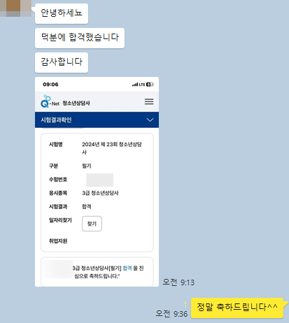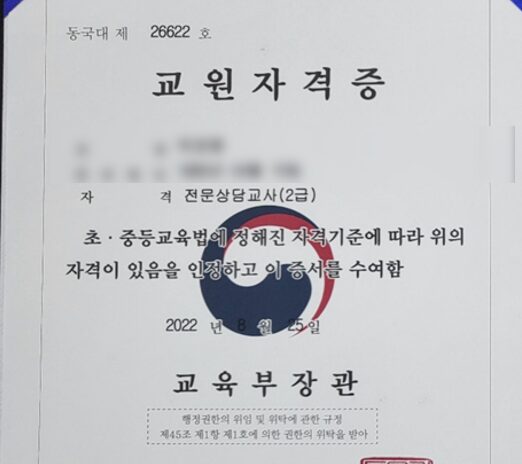 국가자격증 : 청소년상담사3급 임상심리사2급 전문상담교사2급