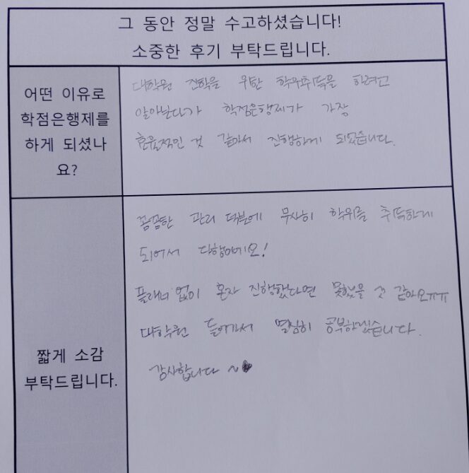 막막했던 처음과 달리 당당히 상담심리대학원 합격한 이**님 후기입니다.