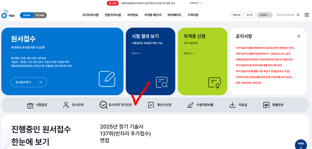 보다 정확한 확인을 원한다면 큐넷(Q-net) 사이트에서 제공하는 ‘응시자격 자가진단 기능’을 활용해 보세요. 입력만 하면 자신의 자격 조건을 바로 체크할 수 있습니다.