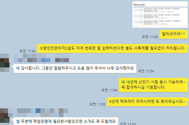 즉, 퇴근 후 1시간 또는 주말 시간을 활용해 충분히 준비할 수 있는데요. 학점 이수가 완료되면 큐넷에 관련 증빙서류를 제출해 자격 심사를 받을 수 있고, 이후 정식 시험 응시가 가능합니다.